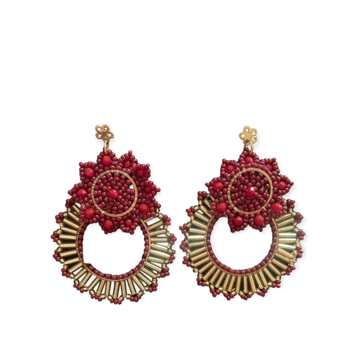 Aritos de acero inoxidable con tejido de mostacilla checa y murano, artesanales traidos desde Cartagena de Indias, Colombia.
